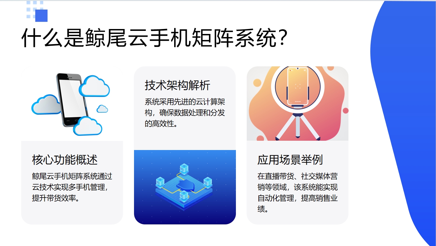 矩阵带货是指采用云手机独立IP隔离通过多个账号形成协同效应,共同为产品引流、转化的营销策略。JWCH提供的矩阵带货解决方案,能够帮助企业高效管理多个账号,实现资源最大化利用。